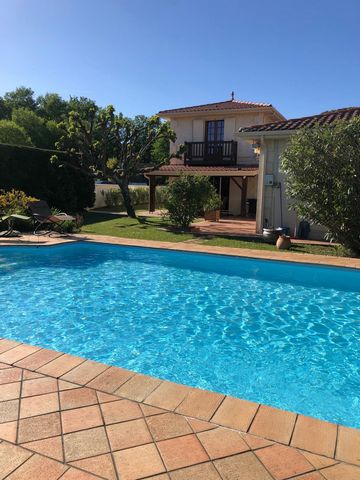Pompignac, au calme absolu, à deux pas des commerces, clubs de sport et écoles, maison de 180 m2 comprenant au rez-de-chaussée une entrée, une pièce à vivre de plus de 60m2 et cheminée fonctionnelle, cuisine Schmidt fermée, grand cellier et véranda avec clim réversible, 3 chambres, et une salle d'eau.<br /><br />A l'étage, avec de superbes poutres, suite parentale comprenant salle d'eau et wc.<br />Côté extérieur, parcelle de 1014m2 avec piscine 5*10 et carrelage en grés de garonne.<br />Double garage de plus de 40m2 avec rochelle.<br />Pour votre confort, Portail électrique, volets alus électriques somfy, nombreux rangements, prestations haut de gamme.<br />Toiture impeccable, maison parfaitement entretenue.Les informations sur les risques auxquels ce bien est exposé sont disponibles sur le site Géorisques : www.georisques.gouv.frPrix de vente : 549 000 €Honoraires charge vendeur