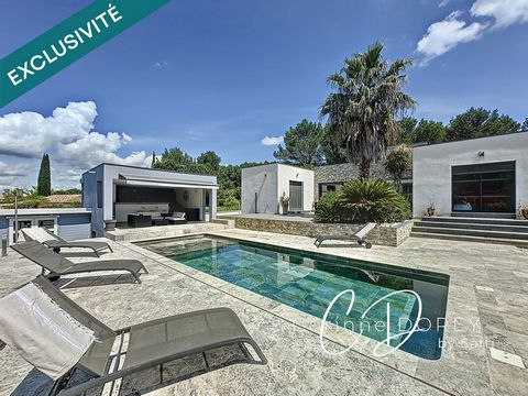 Dans un environnement naturel d’exception, entre Nîmes et les portes de la Camargue, cette villa contemporaine de plain-pied vous accueille à Beauvoisin, au cœur d’une garrigue préservée.<br /><br />Dès l’entrée, vous serez séduit par ses lignes épurées, ses volumes généreux et sa luminosité omniprésente. Développée sur environ 170 m² habitables, la maison s’articule autour d’un patio central, offrant une circulation fluide et une parfaite répartition des espaces. <br /><br />La cuisine ouverte et équipée, pensée dans les moindres détails, s’intègre harmonieusement à une pièce de vie lumineuse et traversante, soulignée d’un côté par de larges baies vitrées ouvrant sur une vaste terrasse dominante à la piscine, et de l’autre, par la douce lumière filtrée depuis le patio central. Ce patio, véritable cœur de la maison, laisse deviner un salon télé cosy et intimiste, idéal pour des instants plus confidentiels.<br /><br />Dans le prolongement naturel de la pièce de vie, l’espace nuit offre, d’un côté, une élégante suite parentale avec dressing et salle d’eau privative, et de l’autre, trois chambres supplémentaires, dont une plus discrète, parfaite pour un bureau ou une chambre d’amis, accompagnées d’une spacieuse salle d’eau à partager.<br /><br />À l’extérieur, le cadre est tout aussi exceptionnel :une piscine en pierre de Bali aux reflets envoûtants invite à la détente, entourée d’une grande plage en pierre naturelle. Un pool house équipé (eau, électricité, toilette) prolonge l’espace de vie d’été, tandis qu’un terrain de pétanque complète l’ambiance méridionale. Le tout sur un terrain paysagé de plus de 1500 m², à l'abri des regards et au calme absolu.<br />Les prestations haut de gamme incluent également une buanderie discrète, un abri de jardin, un double garage, portails motorisés, menuiseries aluminium, moustiquaires, une domotique intelligente, et une performance énergétique maximale.<br /><br />Un bien rare, où l’élégance architecturale rencontre la douceur de vivre, une adresse confidentielle, un bien unique à découvrir sans attendre.Les informations sur les risques auxquels ce bien est exposé sont disponibles sur le site Géorisques : www.georisques.gouv.frPrix de vente : 747 000 €Honoraires charge vendeur